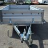 Équipée d’un essieu AL-KO 750 kg, d’un plancher bois CTBX doté de 4 anneaux d’arrimage, d’une roue jockey, et de ridelles latérales démontables.